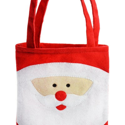 Pojemna torba na prezenty wykonana z filcu z motywem Świętego Mikołaja. Uśmiechnięta twarz Mikołaja wywoła uśmiech na twarzy obdarowanego.
